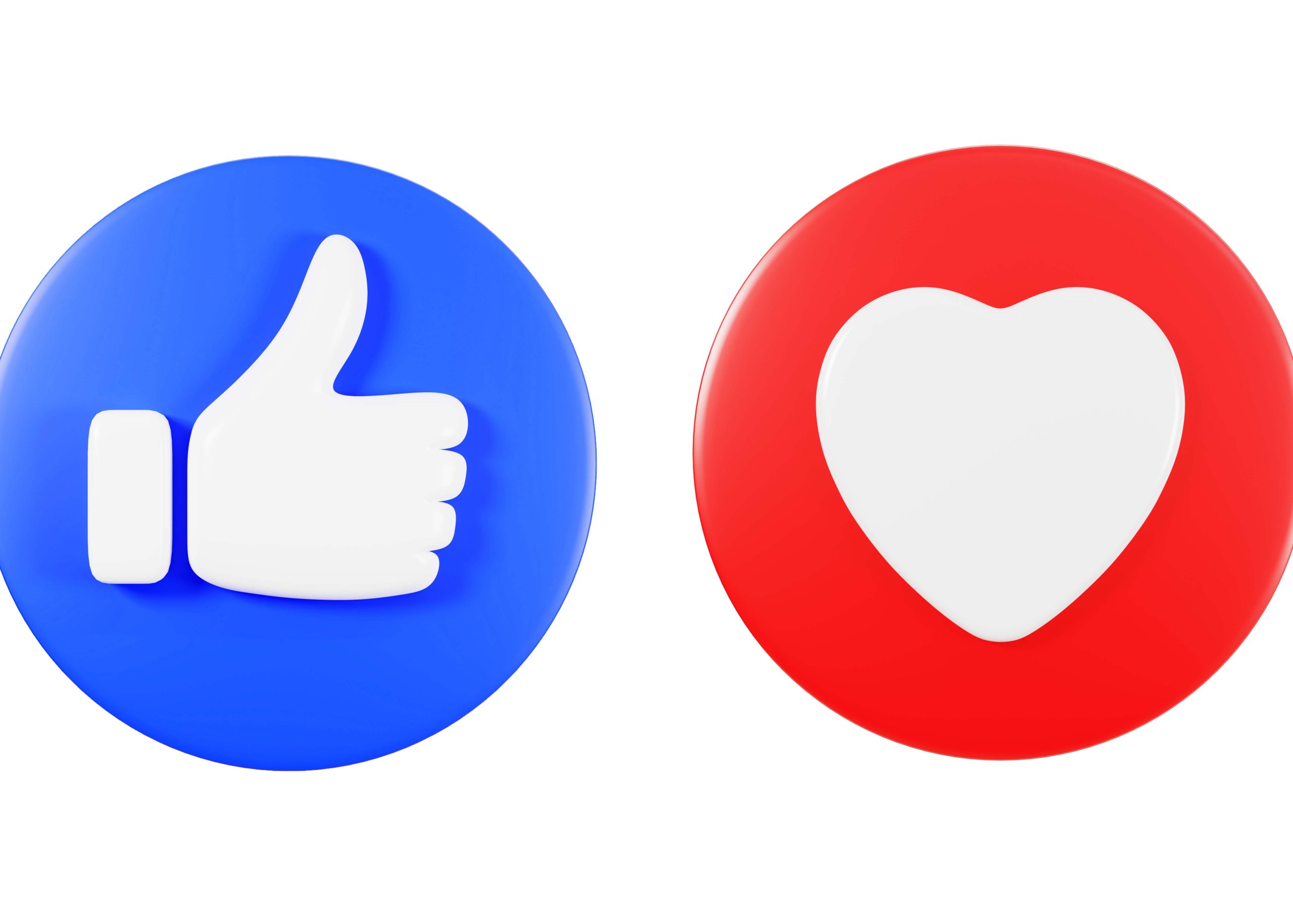 Thumb up with red heart icon, social media icon, isolated on white background with clipping path, 3D rendering illustration